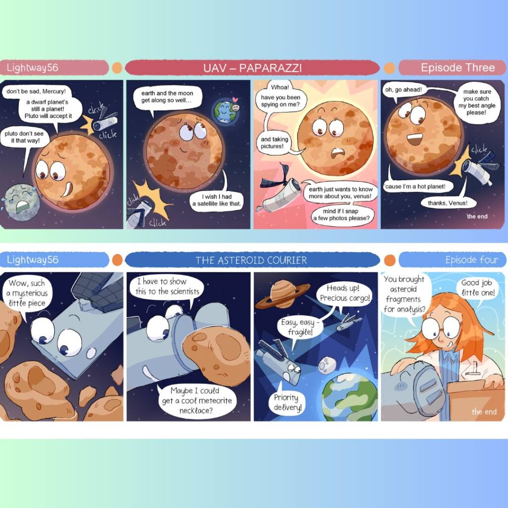 Відділ Studio 104 Студентського Конструкторсько-технологічного Бюро (СКТБ) 104 Кафедри НАУ ХАІ , створив комікс «Космічні пригоди безпілотників» для популяризації науково-технічної діяльності серед дітей та молоді.![]()